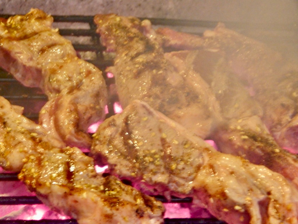 MENU: Deviled Eggs; Shrimp Cocktail; Onion Dip with Crudite and Chips; Grilled Lamb Ribs with Zataar; Potatoes Au Gratin; Broccoli, Cauliflower and Carrot Casserole with Chevre Sauce; Green Beans Almondine; Homemade Dinner Rolls; New York Cheesecake with Berry Sauce