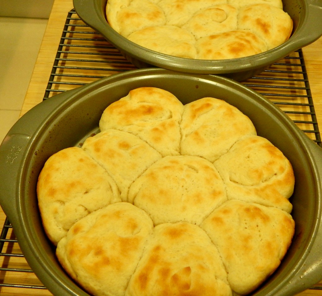 By then, the dough was ready to form into rolls and let rise again. Next, I prepped the appetizers and snapped the green beans and placed in steamer baskets in my wok. I then had time to rest a bit, shower, and dress. The potatoes went in the oven 1 1/2 hours before dinner time. One hour before, the veggie casserole went in the oven. 45 minutes before, I started the charcoal on the grill. 30 minutes before I turned on the beans and put the rolls in the oven. My husband then rubbed the lamb ribs with olive oil and sprinkled with zataar and salt, and placed them on the grill. Just before placing dinner on the table, I tossed the steamed beans with butter, garlic salt, and slivered almonds.