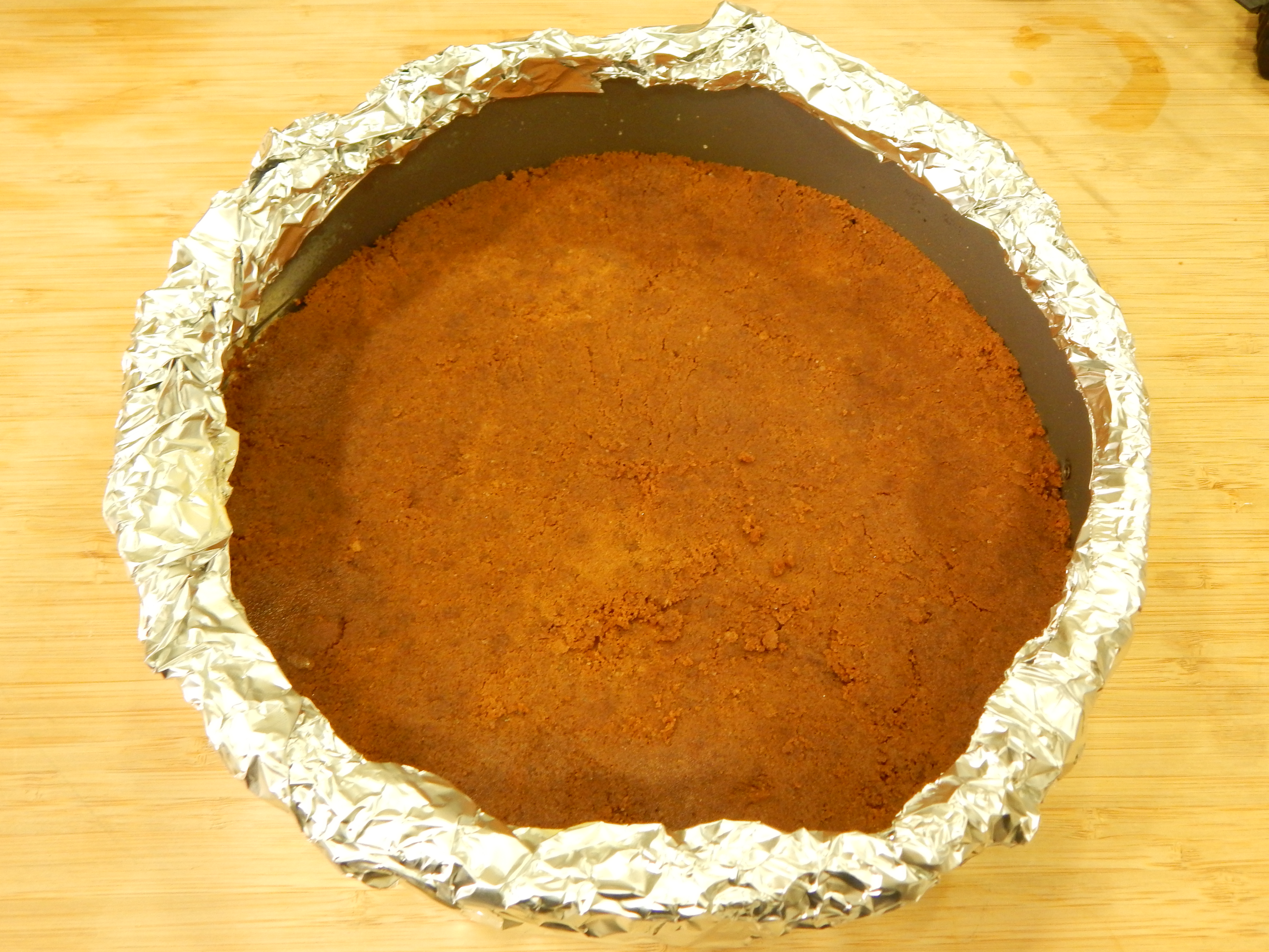 As confirmed in the above recipe, the secret to smooth, gorgeous cheesecake that doesn’t crack is to bake it in a water bath. However, this is a little risky; if water gets into your springform pan, it will totally destroy your crumb crust. So, to prevent that from happening. you have to wrap your pan in the giant-size aluminum foil (I refer to it as the “turkey size”). Living overseas, I frequently have to get creative in substitutions for ingredients in recipes that I am unable to find. When shopping for my Easter dinner, I could not find graham crackers. Now, some folks make a shortbread crust for New York Cheesecake, but I personally prefer the cookie-crumb texture. I combed the very large “Biscuit” aisle at the local supermarket and decided on Lotus Biscoff (yes, the same cookies they give you on airplanes). Because they are pretty sweet themselves, I eliminated the additional sugar from the crust. Another challenge in living overseas is in converting Imperial (U.S.) weights and measures in my favorite recipes to metric. The packaging in Saudi Araba is all listed in metric. Therefore, a digital scale that shows different units of measurement is invaluable. Hint: I constantly ask my Amazon Alexa for the conversion (e.g., how many grams does one cup butter weigh?) For this recipe I had to weigh the butter for the crust and the cream cheese for the filling to get the required amount.