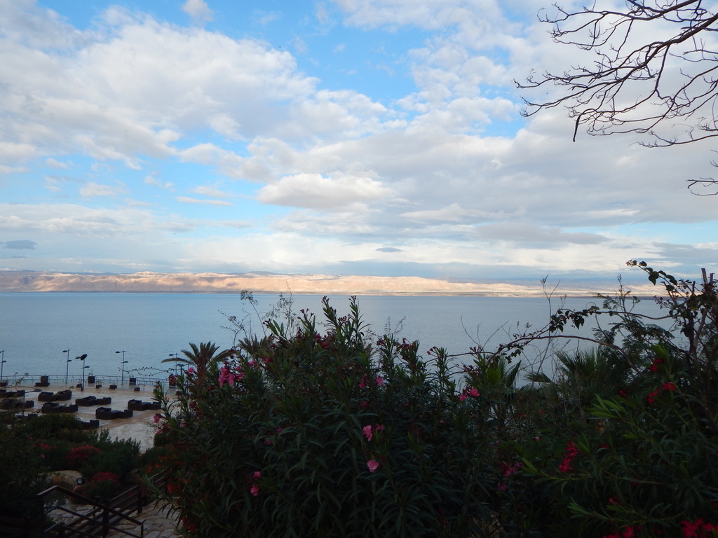 On our unexpected detour to Jordan caused by pandemic travel restrictions, after spending the night in Amman, we headed to the Dead Sea. Although less than an hour drive from Amman, the Dead Sea shore practically has a different climate. Amman sits atop a plateau. The Dead Sea is at or below sea level. It was chilly and damp in Amman in early March. As we headed down off the mountain, the sun came out and the temperature started to climb. We shed our sweaters and put on our sunglasses.