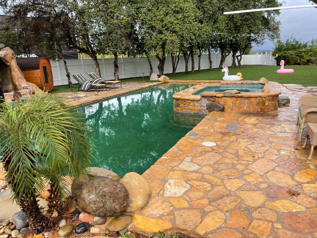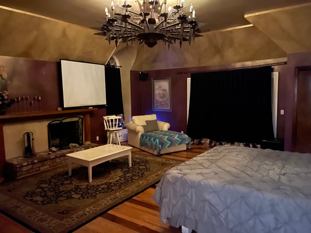 At first look, the house seemed great. It was big (5 bedrooms, 5 baths), and decorated in a fun, old Hollywood glamour fashion. In addition to a big Master Bedroom Suite, the house had several fireplaces, a bar, a billiards room, a large meeting room, and a giant kitchen. The outdoor space was also lovely, with a hot tub, swimming pool, and putting green.